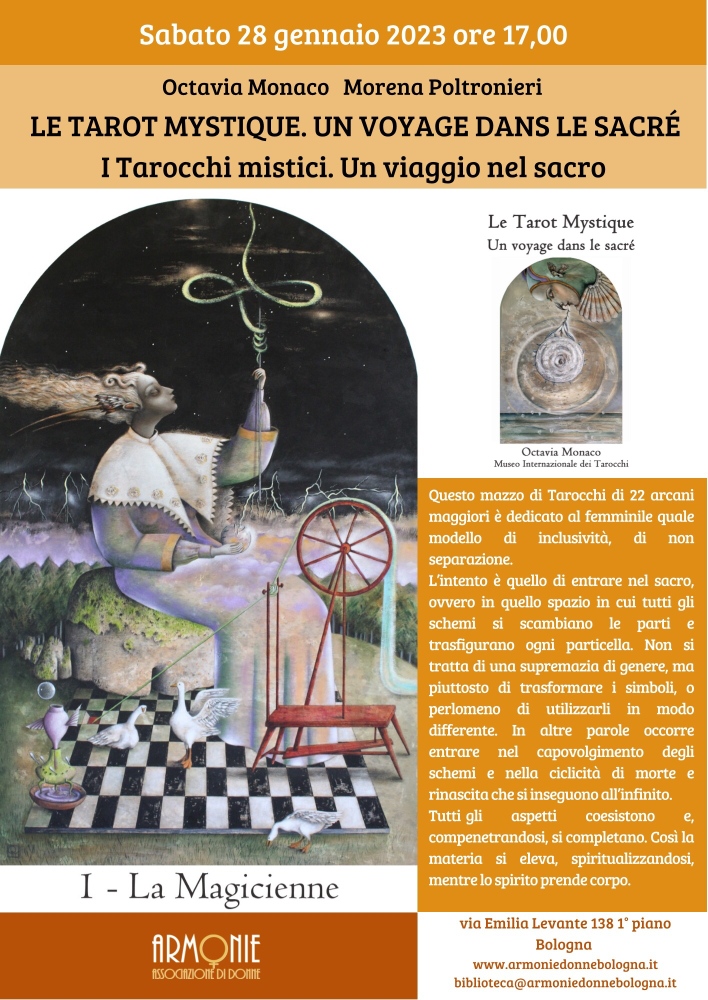 For years, together with the US correspondent Arnell Ando, Tarot Travel Guide of Italy, a magical Italian tour has been organized, attended by artists, scholars, and tarot collectors from all over the world. In a couple of weeks, participants visit the Italian places where tarot has left its marks, from Bologna to Ferrara; from Milan to the Tarot Garden by Niki de St Phalle in Capalbio, as well as Rimini, Siena, Varese, Clusone, and Bergamo, in order to better understand the Italian artistic heritage in this field.